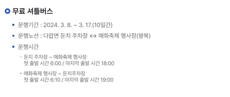 - 축제기간 : 2024년 3월 8일(금) ~ 3월 17일(일) 10일간