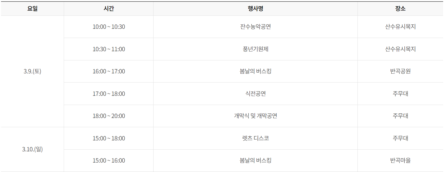 - 일 자 : 3. 9 (토) ~ 3. 10(일) , 3. 16(토) ~ 3. 17(일)