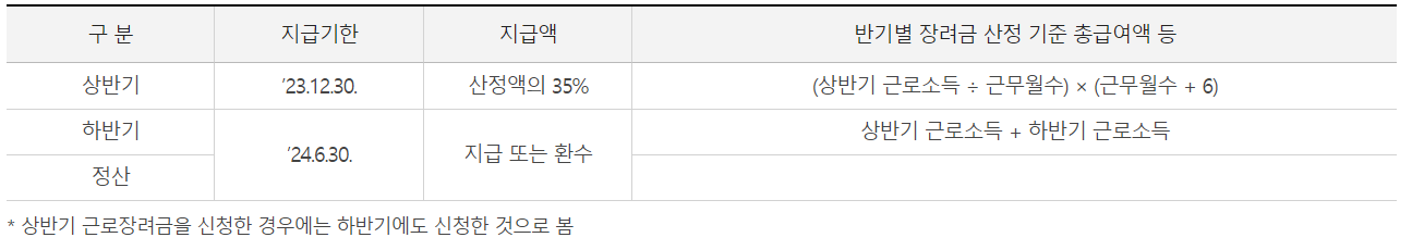 ▶ 반기신청은 '23년에 근로소득만 있어야 신청할 수 있으나, 사업소득 등이 함께 있는 신청자는 5월 정기신청한 것으로 보아 '24년 8월에 정산, 지급하게 됩니다.