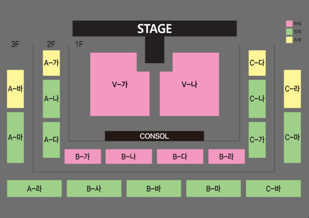 - Floor(1층) V- 가, 나 구역은 단차가 없는 평지 좌석 이며, 보조 의자가 설치됩니다.
