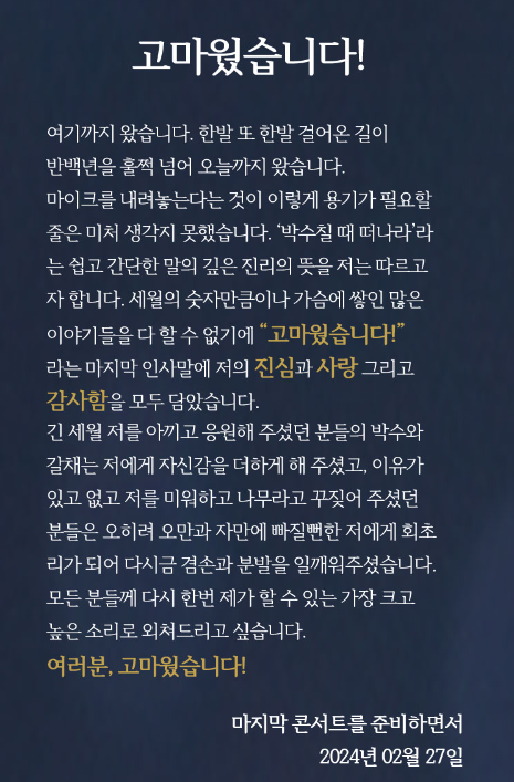 오늘은 '2024 고마웠습니다 - 라스트콘서트(LAST CONCERT)' 울산콘서트 예매에 대해 알아보겠습니다.