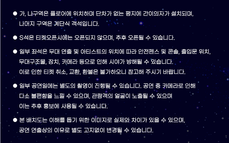 - 공연장소 : 강원대학교춘천캔퍼스 백령아트센터(좌석배치도)