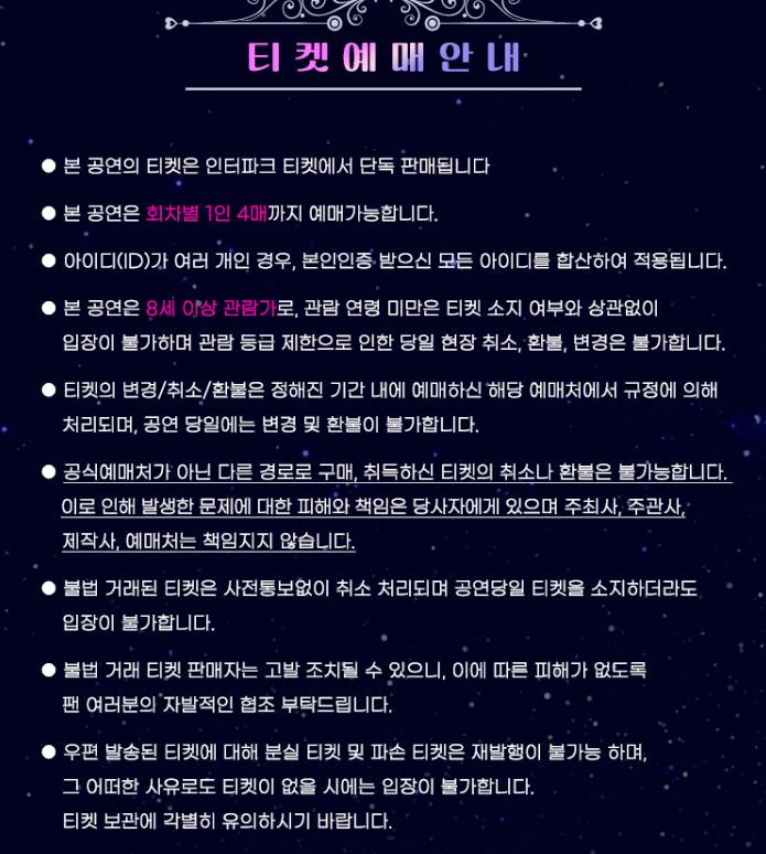 - 티켓예매 : 인터파크 단독 예매