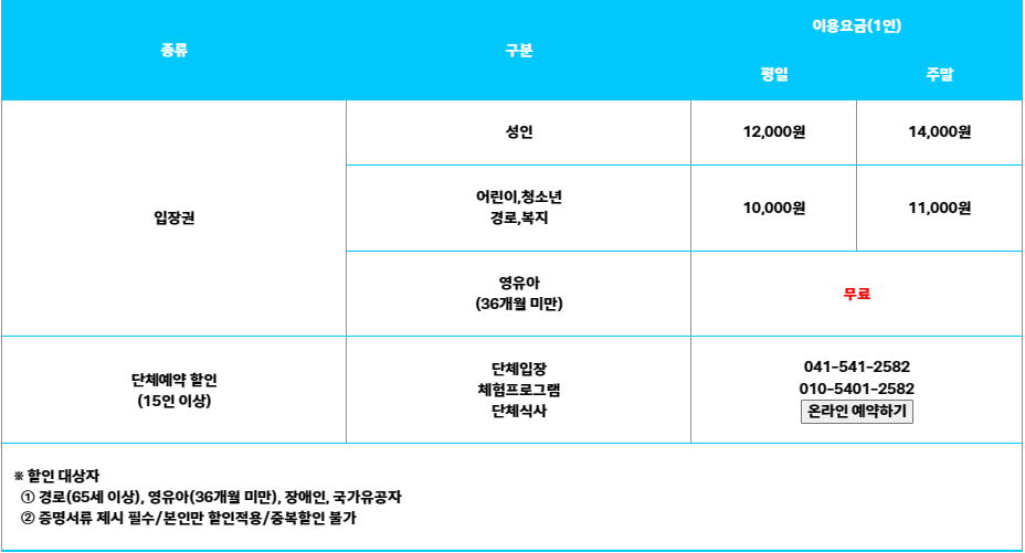 - 운영시간 : 09:00 ~ 18:00 <매표마감 17:00>