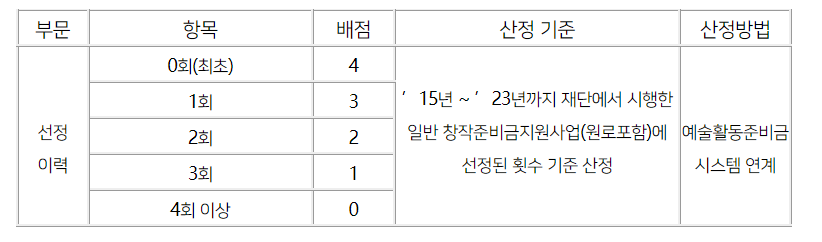 - 선정이력 부문 배점표