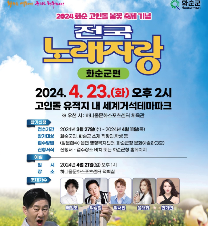 이번 포스팅에서는 '2024 환순 고인돌 봄꽃축제' 의 행사기간 및 내용에 대해 알아보겠습니다.