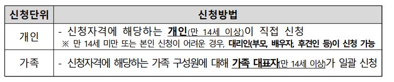 * 신청단위 : 개인 또는 가족