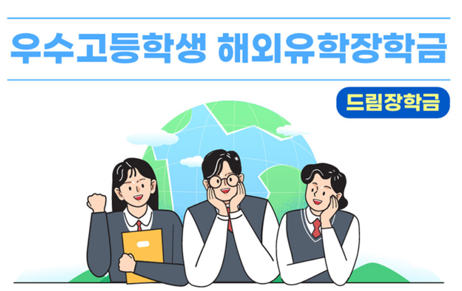 우수고등학생 해외유학 장학금(드림장학금)은 학업에 대한 의자와 열정이 있는 저소득층 성적 우수고등학생에게 해외유학 기회를 제공하여 글로벌 인재로 성장을 지원하는 장학금 제도입니다.