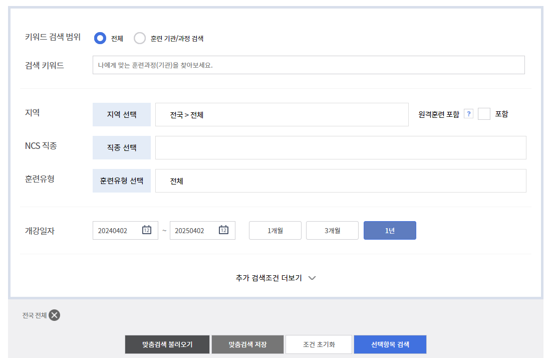 훈련기간/ 과정 검색 및 수강신청