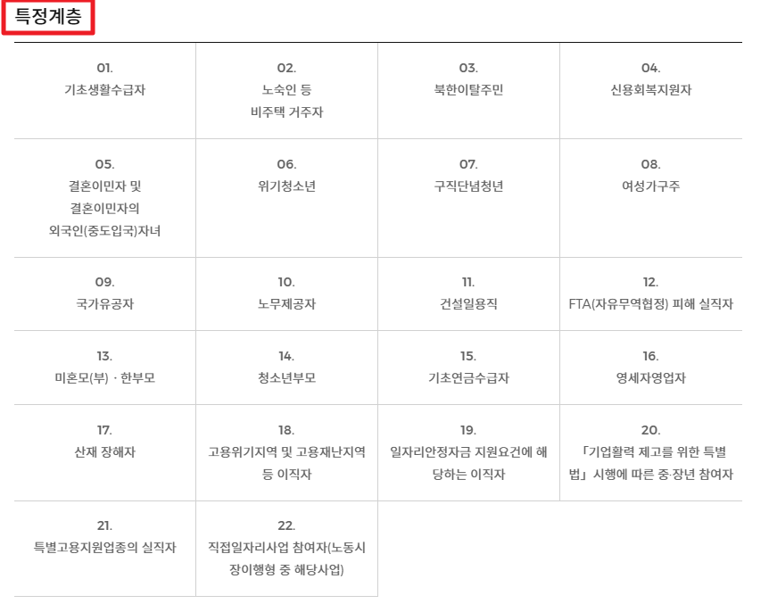 * Ⅰ유형에 해당하지 않는 특정계층, 청년, 중장년등이 지원대상입니다.