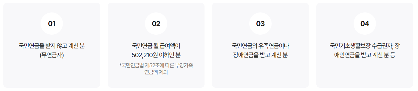 - 전국 읍·면·동 주민센터 또는 행정복지센터, 국민연금공단 지사에서 신청
