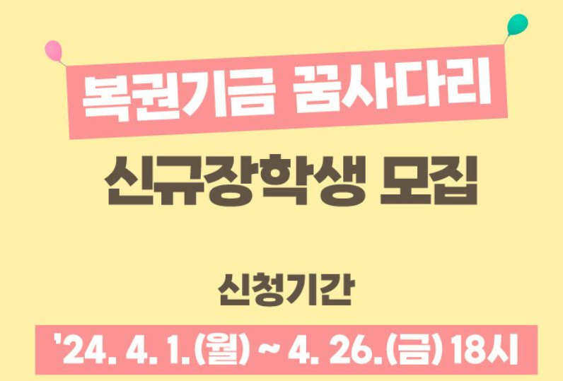 복권기금을 재원으로 저소득층 우수 중 · 고생을 발굴, 대학까지 연계 지원하는 국가 장학제도로 올해는 신규 선발되는 2천명 (꿈 장학금 1,800명, 다문화 장학금 200명),기존에 선발된 5천명의 저소득층 학생들에게 복권기금 꿈사다리 장학금을 지원하며 또한 꿈 장학금과 다문화 장학금의 2가지 유형으로 운영됩니다. 4월부터 신청을 받아 서류심사, 심층평가 등을 거쳐 6월에 장학생을 최종 선발 하며 장학생에게는 학업장려금 25만 ~ 45만원을 카드적립금 방식으로 매월 지금하며 일대일 멘토링, 심리상담 등을 제공한다고 합니다.