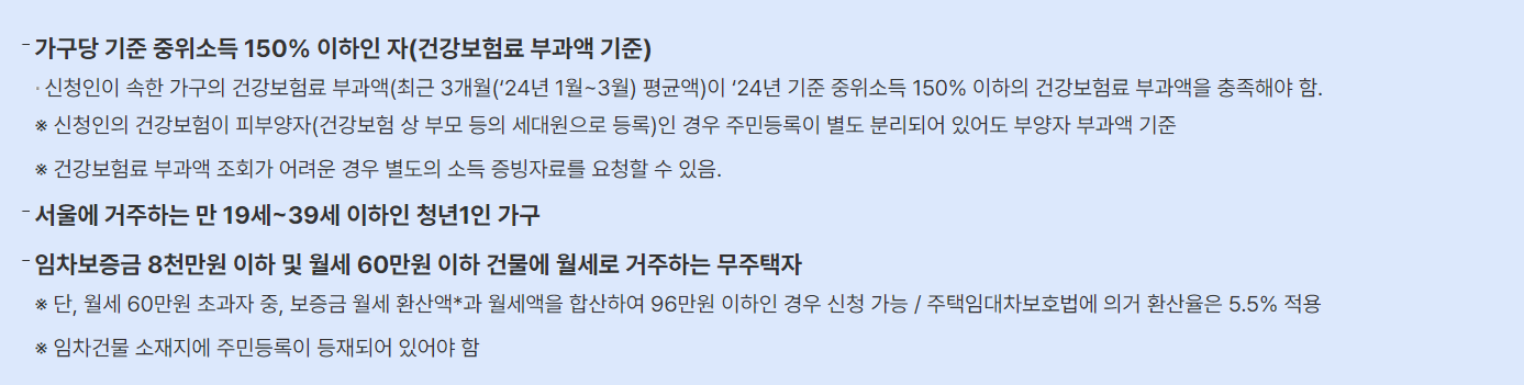 - 지원기준 : 신청일 기준 다음 조건을 만족하는 사람