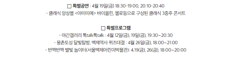 - [봄(4~5월)] : 해설과 이야기가 있는,가족과 함께 하는 문화의 밤