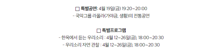 <4.19.(금) 야간공연 관람의 날> <4.26.(금) 야간공연 관람의 날>