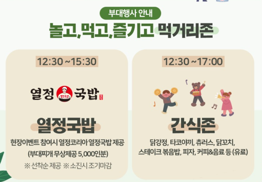 현장 이벤트시 '열정국밥 부대찌개 무료 이벤트' 가 진행되며 선착순 5,000명입니다.