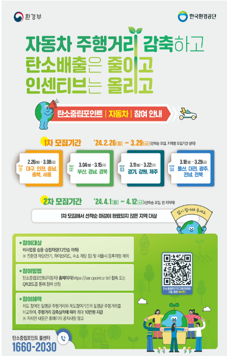 자동차 대신 대중교통 이용으로 탄소 절감에 도움도 되고 인센티브도 받는 '자동차 탄소포인트' 지금 가입해보는건 어떠신가요??