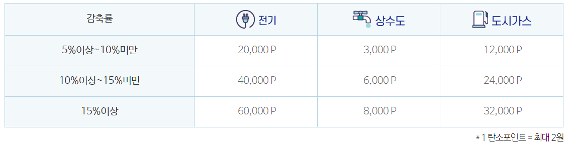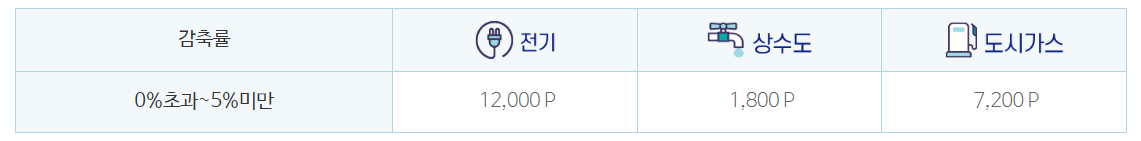 - 유지 인센티브 : 2회 이상 연속으로 5% 이상 감축하여 인센티브를 받은 참역자가 이어서 0%초과 ~ 5% 미만의 감축률을 유지할 경우 지급