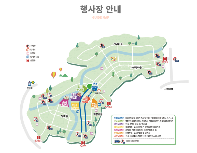 - 주 행사장은 화랑마을 일대(도자기예술로 78번길 일대)