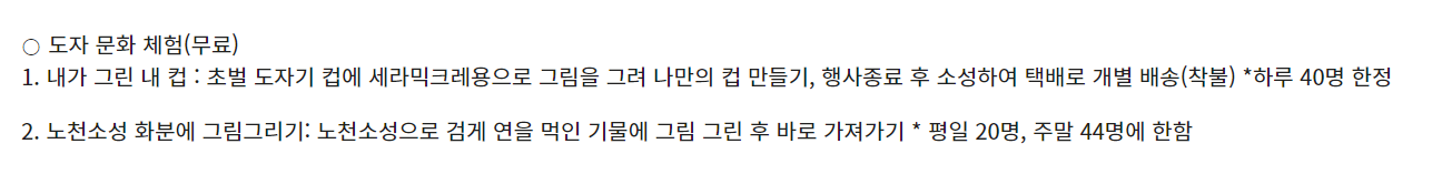 - 이천 도자기 축제는 무료입장, 무료주차입니다.